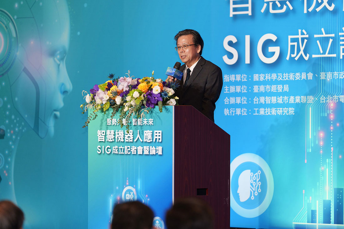 行政院今年6月宣布「智慧機器人產業推動方案」,臺南市政府積極串聯產學研資源,與台灣智慧城市產業聯盟(TSSA)及台北市電腦商業同業公會共同合作,10 月 8 日在台大國際會議中心盛大舉行「智慧機器人應用 SIG 成立記者會暨論壇」。「智慧機器人應用SIG(Special Interest Group)」匯聚超過50家廠商,涵蓋大小企業與新創,包含:華碩電腦、和碩聯合、信驊科技(酷博樂)、悠泰科技、盟立自動化、達明機器人、博鈞科技、Sigma Robotics等,廠商數並持續擴增中。